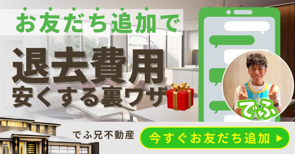 以下の公式LINEでは、期間限定で「退去費用を劇的に安くする裏ワザ」無料で配布しています。プレゼント期間が終わらないうちに、受け取りだけでもしておきましょう。